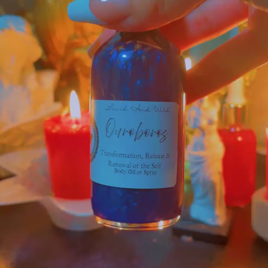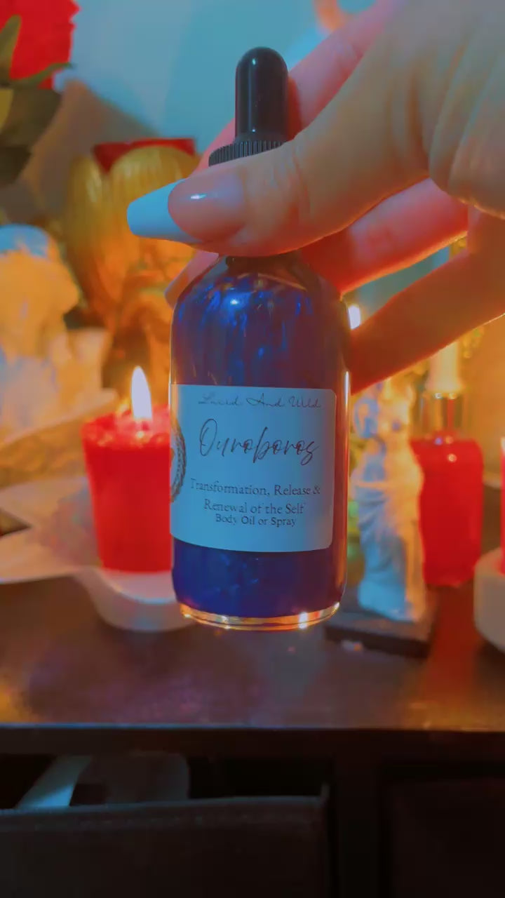 Ouroboros — the serpent eating its tail — symbolizes the eternal cycle of death and rebirth. This oil was designed as a companion during deep transformation: shedding old versions of self, breaking toxic cycles, and calling in renewal. Use it during cord-cutting rituals, new moon ceremonies, or any time you’re ready to rise from the ashes of your past.