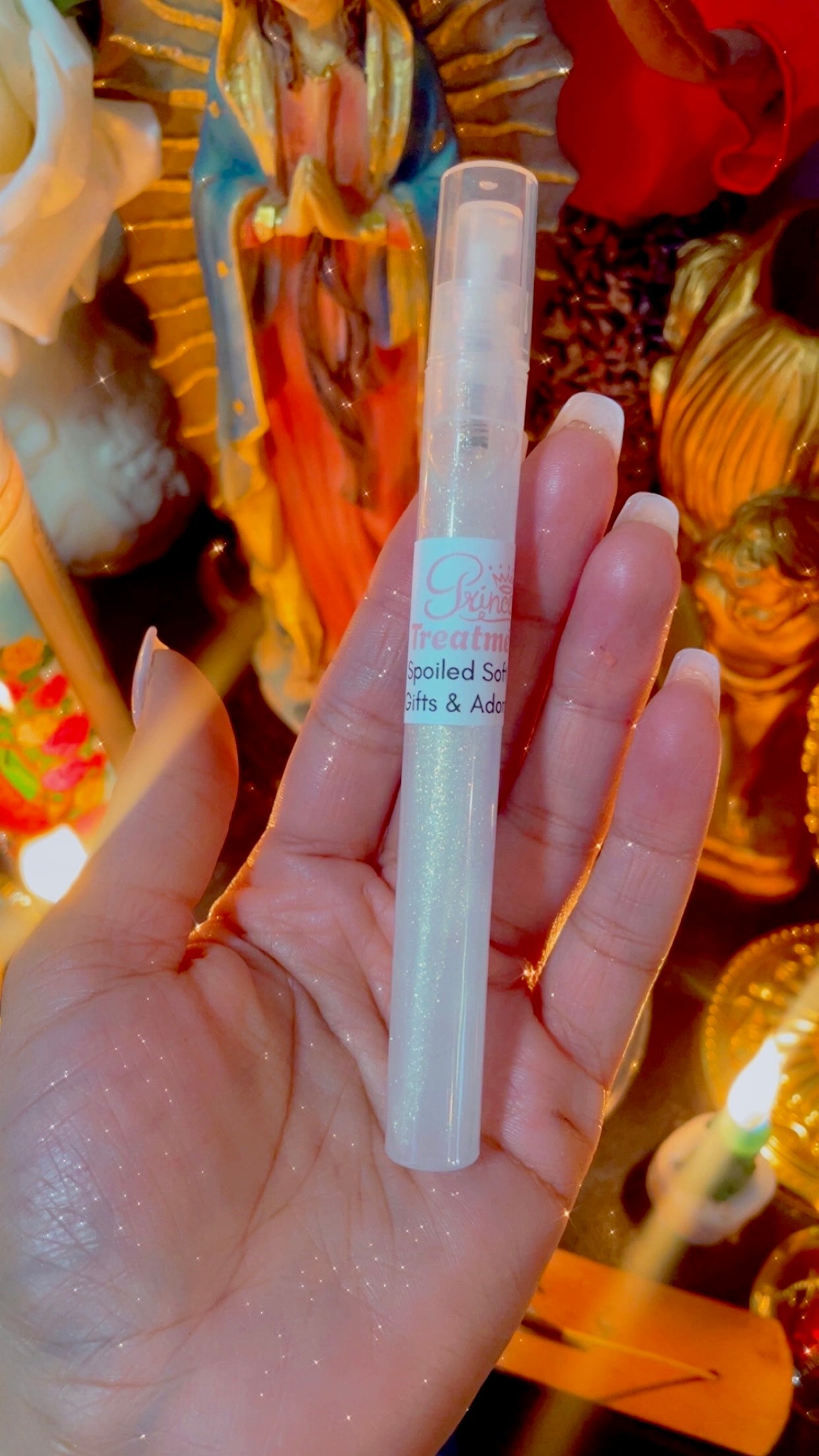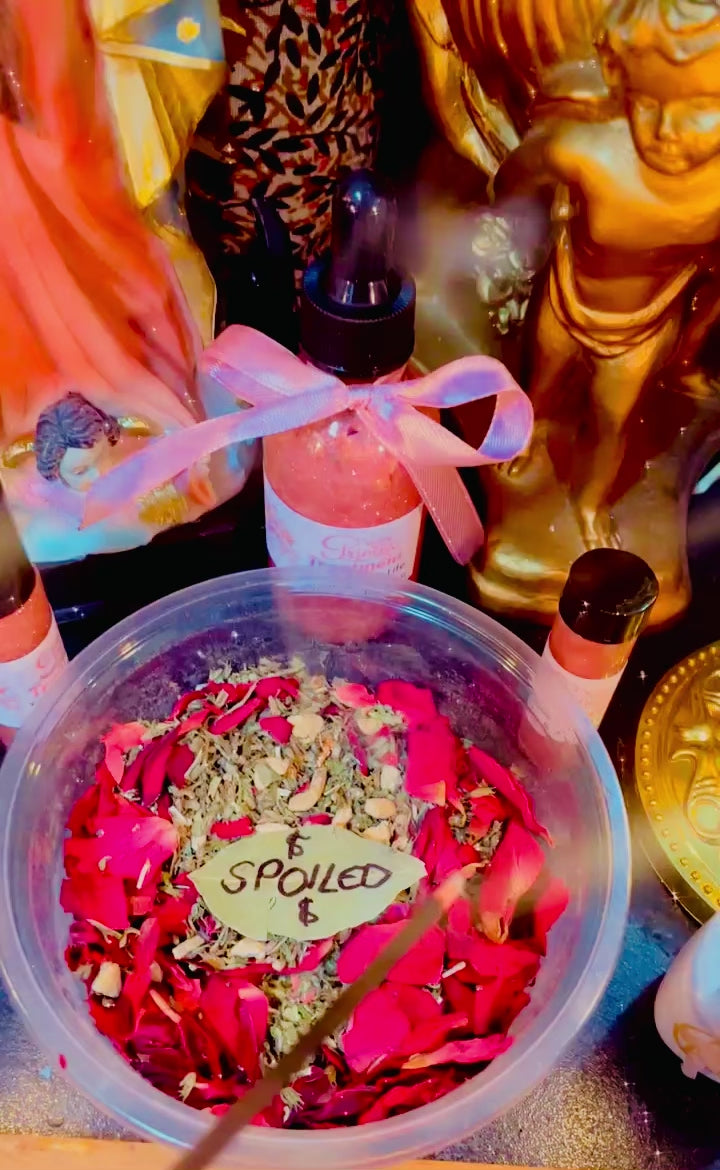 This oil is for the woman who no longer chases… she receives. Princess Treatment is a luxurious intention oil crafted to support the energy of being adored, prioritized, and generously treated. It is designed to help you align with the frequency of effortless receiving -----gifts, compliments, attention, favors, and soft opportunities flowing toward you without force or overexertion. Get the shimmer spray or a clear spray if you choose the spray ♥ oils include shimmer.